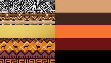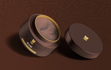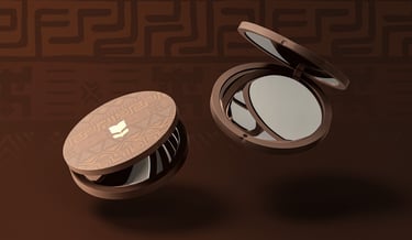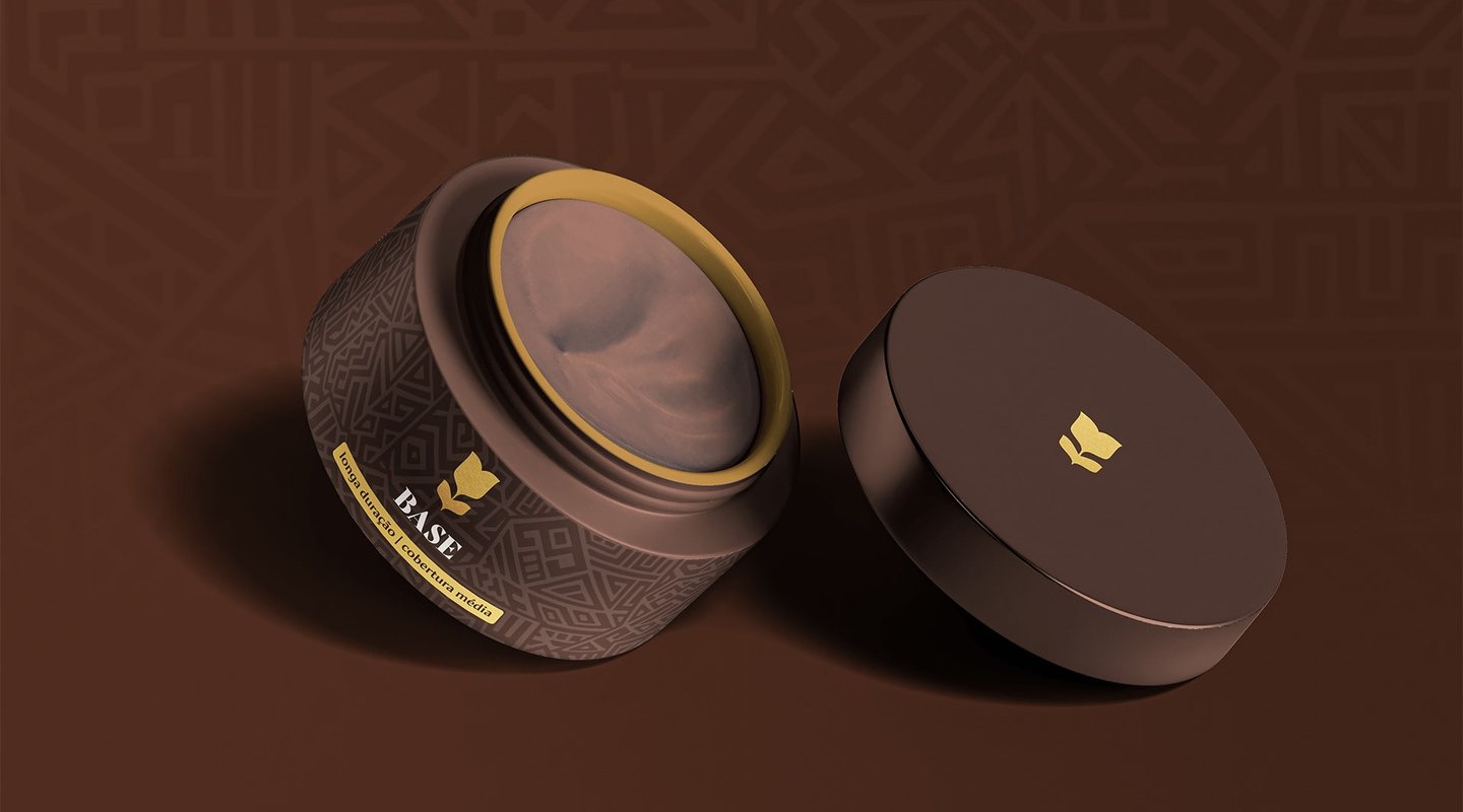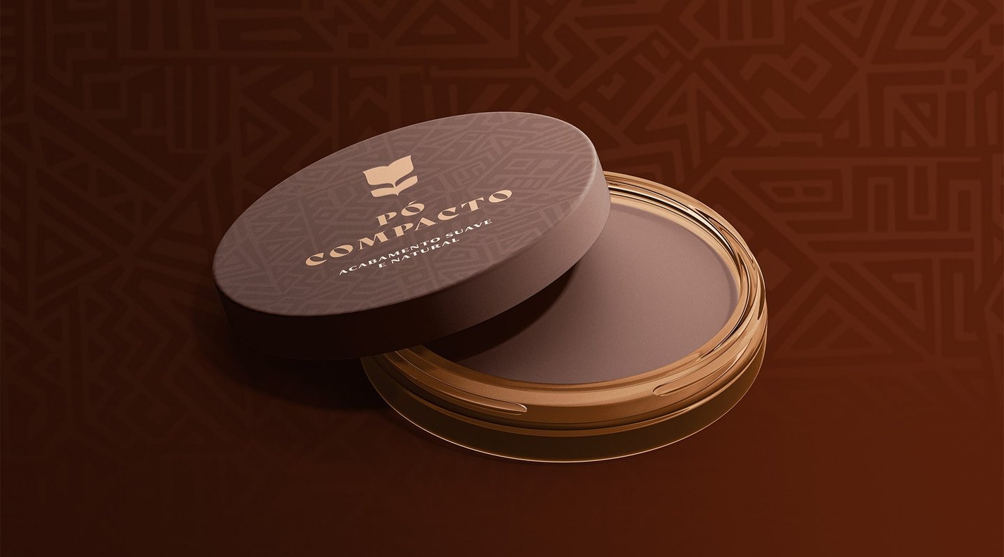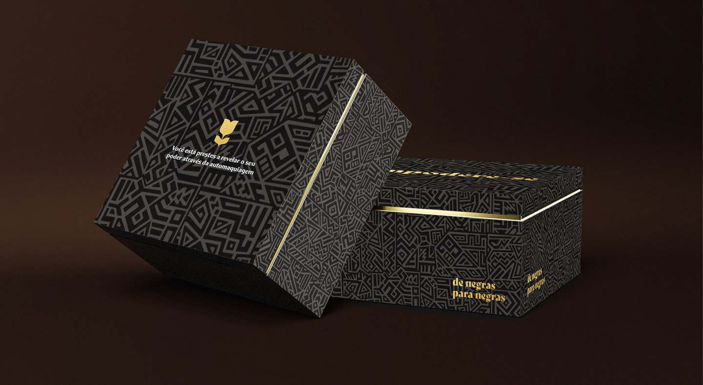 O projeto utiliza imagens de mulheres negras com postura firme e olhares marcantes, fontes elegantes para transmitir força, e uma paleta de cores com tons de marrom, vermelho, laranja e dourado, conectando-se à cultura africana. O logo, em forma de flor, simboliza feminilidade, enquanto o design visual destaca os rostos com iluminação cuidadosa para valorizar a beleza negra e promover empoderamento e inclusão.