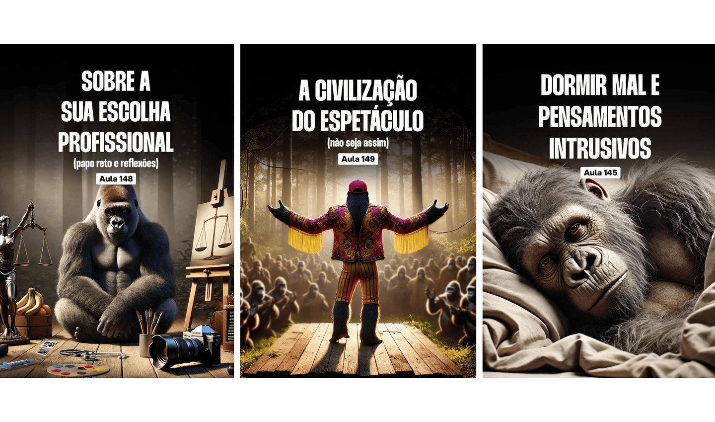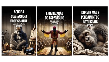 As aulas possuem materiais complementares em PDF, com resumos, checklists e atividades práticas. Para as capas desses materiais, utilizei inteligência artificial e manipulação de imagens, sempre destacando o gorila, símbolo do RD. O gorila é cuidadosamente adaptado para refletir o tema específico de cada aula, o que torna o conteúdo visualmente atraente e reforça a identidade da marca de forma divertida e envolvente.